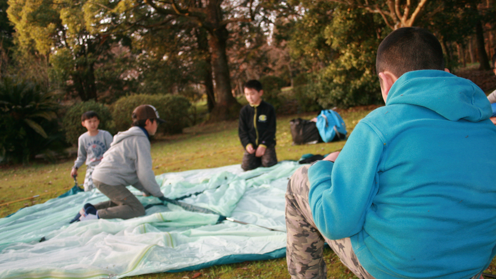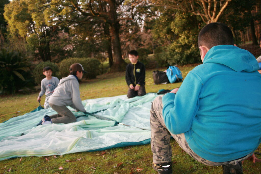 野山を走り回り、夜は寝袋で眠る。